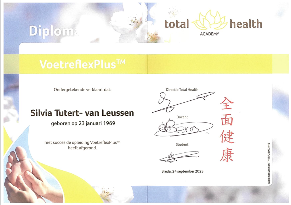 Ik ben in 2020 begonnen met de opleiding Voetreflexplus bij Total Health opleidingen. Dit is een 3-jarige hbo-opleiding.